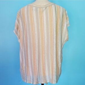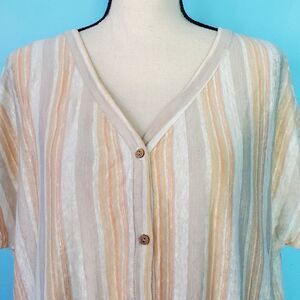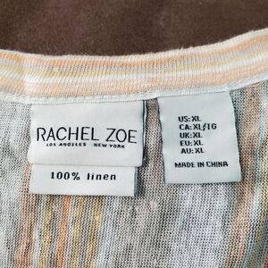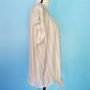 Rachel Zoe Multicolored Striped Knotted Front 100% Linen Button Up Shirt