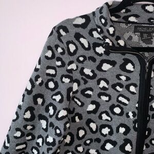 Rachel Zoe NWT Gray & Black Leopard Print Full Zip Knit Jacket Medium Women’s