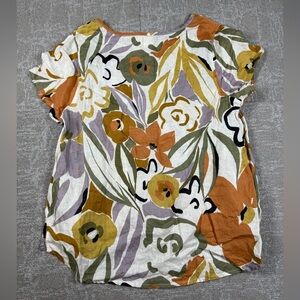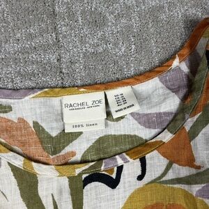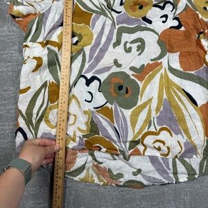 Rachel Zoe New York 100% Linen Boho Floral Print Short Sleeve Blouse Top Sz 1X