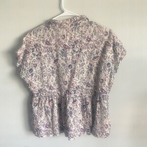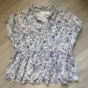 Rachel Zoe New York 100% Linen Floral Short Sleeve Peplum Blouse Size Small