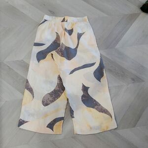 Rachel Zoe New York Wide Leg Pull On Crop Linen Pants Abstract Print Size Medium,,Look New, Actual Measurements are