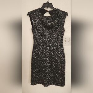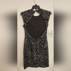 Rachel Zoe Open Back Sheath Knott Sequin Mini Dress in Black Size 10