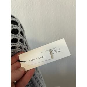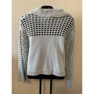 Rachel Zoe Open Knit Pullover Sweater Cotton XS Grey Coastal Preppy Breezy New