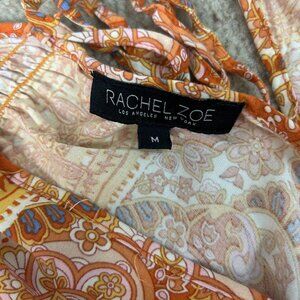 Rachel Zoe Orange Floral Cropped Top Smocked Waist Milkmaid Size Medium Women's