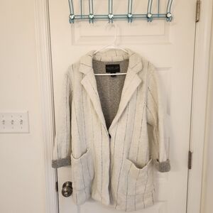 Rachel Zoe Oversized Wool Striped Ivory Snap On Blazer Coat Pockets Size M