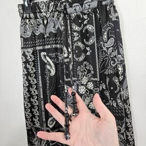 Rachel Zoe Paisley Wide Leg Silky Pants Elastic Waist Womens Size Small