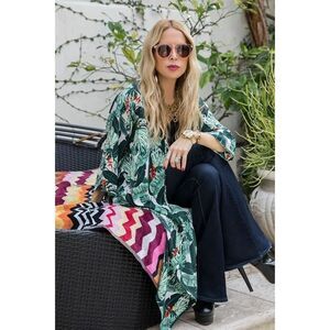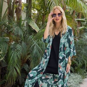 Rachel Zoe Palm Leaf Print Kaftan Duster Cover Up Kimono
