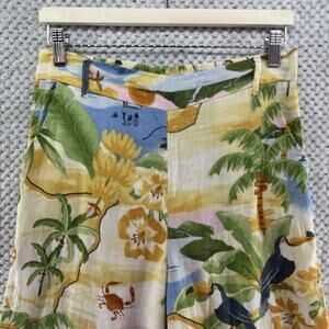 Rachel Zoe Pants S Yellow Linen Tropical Novelty Print PullOn High Rise Wide Leg