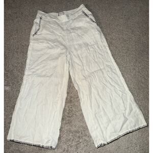 Rachel Zoe Pants Womens Wide Leg 100% Linen Cropped Woven Beachy Coastal (M)