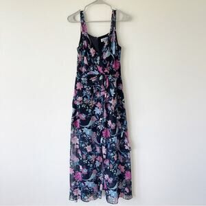 Designed for a sexy body-hugging fit, this dark floral Rachel Zoe dress is finished with a trendy tiered ruffle skirt.