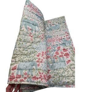 Add charm and texture to your home with this Rachel Zoe quilted throw coverlet. Designed in a patchwork style, it features a delicate mix of floral motifs and elephant prints in shades of dusty rose, sage green, light blue-green, and cream. The soft quilted construction makes it perfect for layering on a bed or draping over a sofa, while the whimsical details bring a touch of Cottagecore, Shabby Chic, or Bohemian style to any space.