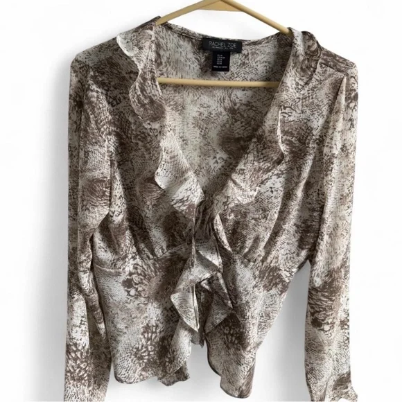 Rachel Zoe brown & white snakeskin print blouse with ruffle detail Size M, worn once. Very flattering on. glamour #snakeprint