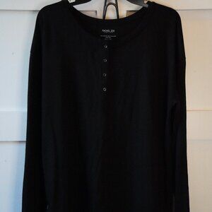 Rachel Zoe, Pima Cotton Blend ¼ Snap Front Long Sleeve Shirt, Black