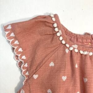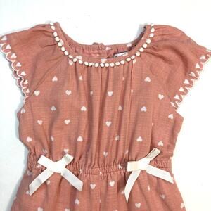 Rachel Zoe Pink Embroidered Hearts Scalloped Pom Poms Bow Jumpsuit Outfit
