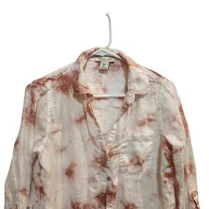Rachel Zoe Pink Tie Dye Long Sleeve Button Up Shirt Casual Linen Top Small