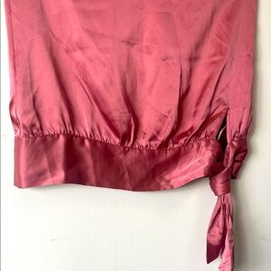 This relaxed pink blouse by Rachel Zoe features a chic tie front and sleeveless tank design, perfect for a stylish yet comfortable look. The silky fabric adds a touch of elegance, making it suitable for both casual and dressy occasions.