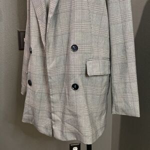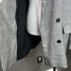 Rachel Zoe Plaid Oversized Blazer Jacket Grey Open Front