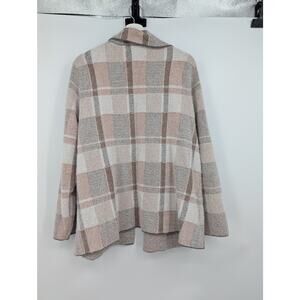 Rachel Zoe Plaid Shacket Pink Soft Fuzzy Button Front Cardigan Sweater 2X