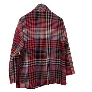 Rachel Zoe Plaid Tweed Wool Blend Coat Pink Check Longline Jacket Size M