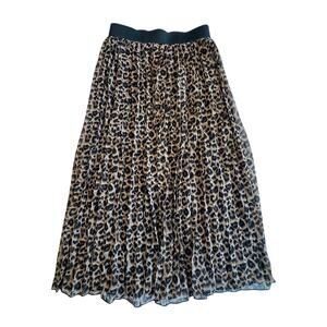 Rachel Zoe Pleated Leopard Animal Print Lined Elastic Waist Skirt Size S Pull On