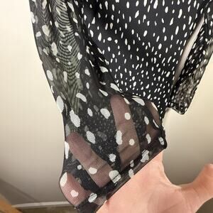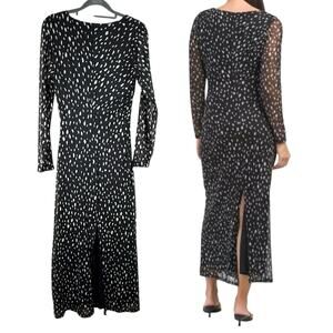 Rachel Zoe Polka Dot Long Dress Ruched Side Tulle Maxi Modest Blk/Wht SIZE XS