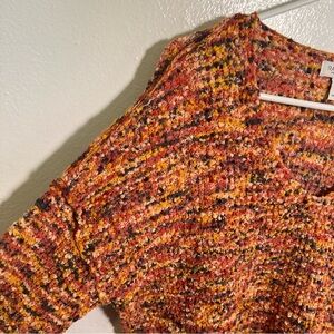 Good condition, minor wear. Rachel Zoe. Popcorn yarn knit sweater. V-neck. Drop shoulder. Yellow, pink and gray blue colors. Size large. 100% polyester. Pit to pit laying flat 24” Shoulder to hem 22” Sleeve (shoulder to hem) 19”. All measurements are approximate and taken lying flat. Smoke free home. No trades, offers welcome.