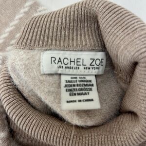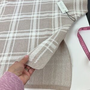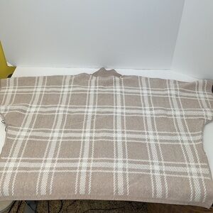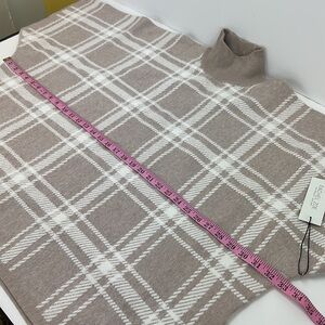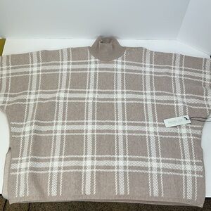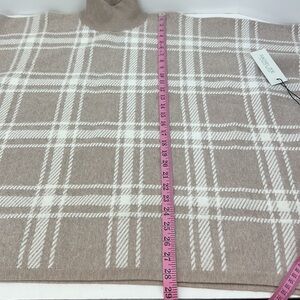 Rachel Zoe Pull Over Poncho Sweater One Size Cream Tan Window Pane Mock Neck