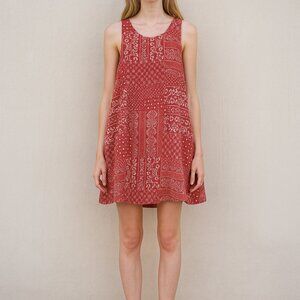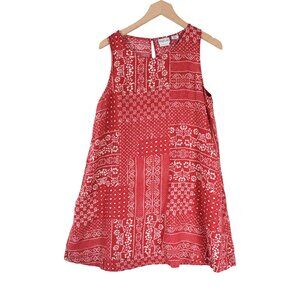 Rachel Zoe Red Boho Paisley Tank Top L 100% Linen Summer Festival Minimalist