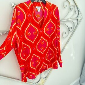 This is a Rachel Zoe Pink and Orange Blouse with Floral Paisley Print.