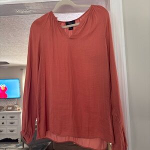 Elegant rust blouse with long sleeves. Lightweight and flowy design.