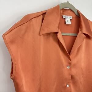 Rachel Zoe Satin Sleeveless Point collar Button Up Blouse Orange size Small