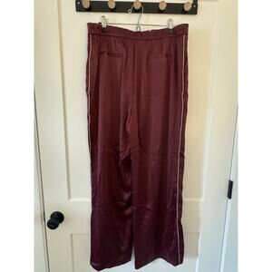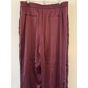 Rachel Zoe Satin Straight Wide Leg Pants Size 14 Maroon/Wine Bling Accent NWT