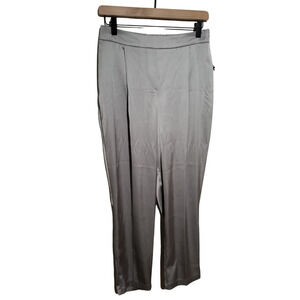 Rachel Zoe Silver Satin Pleated Pants Elastic Waist Pockets Size 4 NWT
