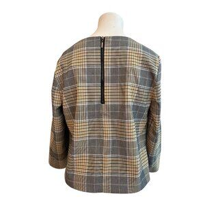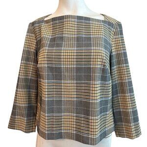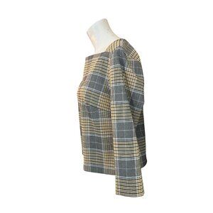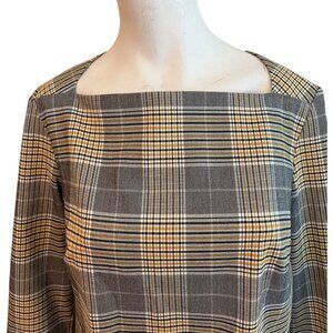 Rachel Zoe Size 8 Yellow Black Plaid Long Sleeve Blouse Zipper Square Neck