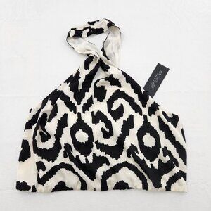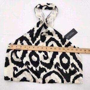 Rachel Zoe Size Large Black & White Crop Lined Halter Top Button Neck