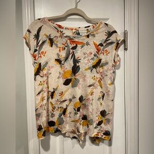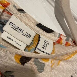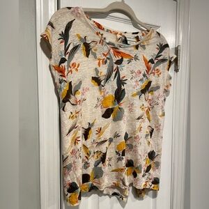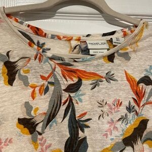 Rachel Zoe Size S Cream Tropical Print Asymmetrical Wooden Button Back Top
