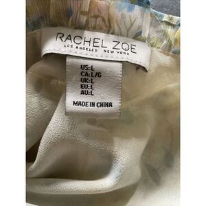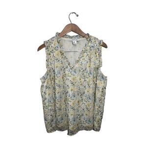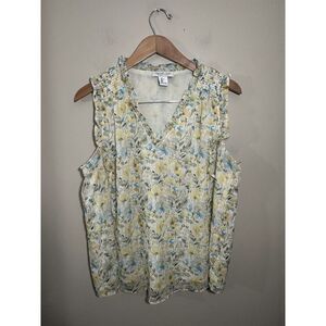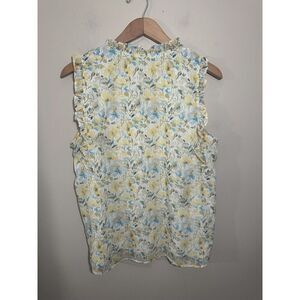 Rachel Zoe Sleeveless Top Yellow Blue Floral Silver Shimmer Large Ruffle V Neck