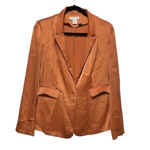 Rachel Zoe Solid Orange Satin Long Sleeve Collared Blazer Jacket M