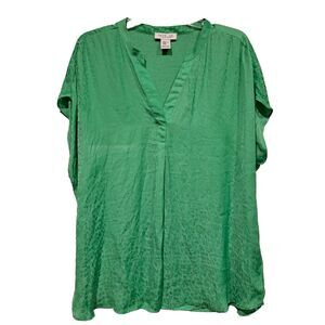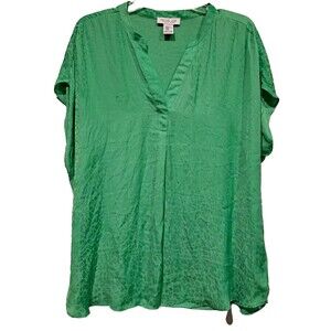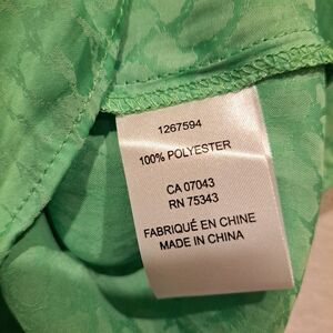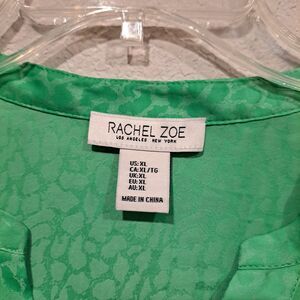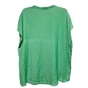 Rachel Zoe Split V-Neck Green on Green Animal Print Silky Cap Sleeve Top Size XL