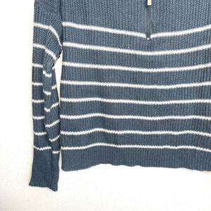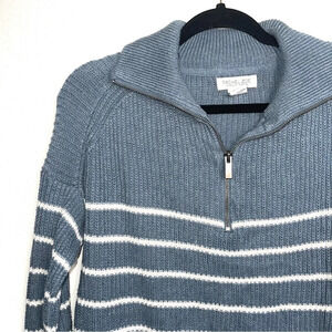 Rachel Zoe Steel Blue & White Striped Collar Quarter Zip Sweater Xsmall Women’s