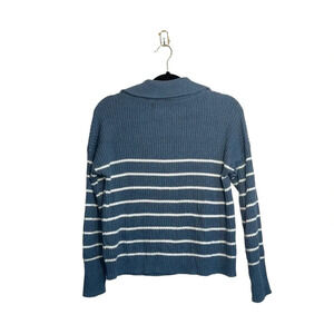 Rachel Zoe steel blue & white striped quarter zip sweater. In excellent condition! Collared. Quarter zip front closure. Long sleeves. Tight knit material. Steel blue with white stripes. Size xsmall.