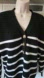 Rachel Zoe knit vneck pullover sweater. Black with white stripes. 3 faux tortoiseshell buttons in front. Loose fit. Size L. No rips or stains.
