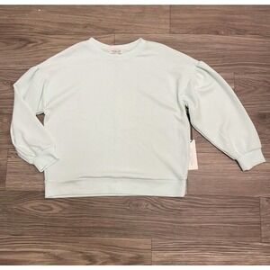 NWT Rachel Zoe Puff Sleeve Sweatshirt in light pastel mint green, size small.