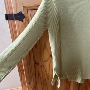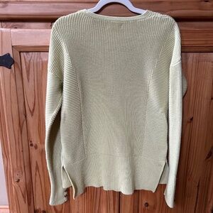 Women's Rachel Zoe sweater, green, v neck, ribbed, button detail on sleeves, size small