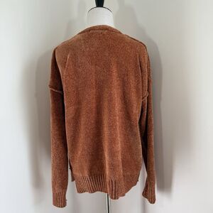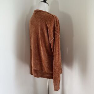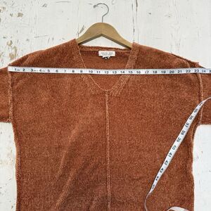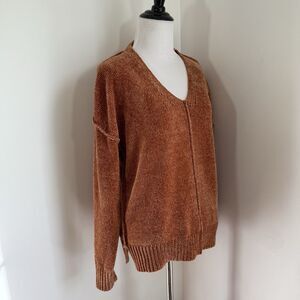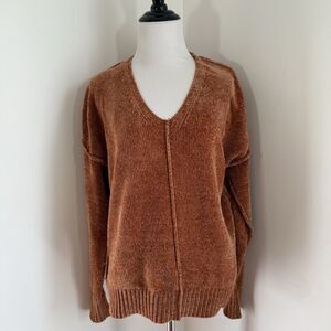 Rachel Zoe Sweater S Chenille V Neck Soft Knit Slouchy Cozy Burnt Orange Seams