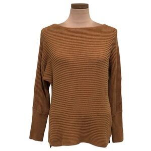 Rachel Zoe Sweater Size Medium Nutmeg Brown Ribbed Boat Neck Pullover