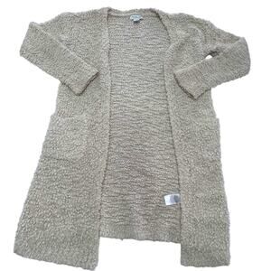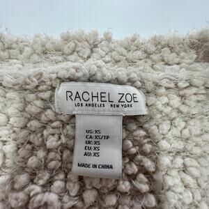 Rachel Zoe Sweater Women XS Beige Open Front Textured Knit Cardigan Pockets Cozy