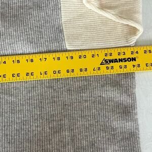 This Rachel Zoe ivory beige cashmere ribbed mock neck sweater in women's size M is a luxurious addition to any wardrobe. The tight-knit colorblock design with a mock neck neckline and long cuff sleeves offers a stylish and comfortable fit for casual occasions. Sustainably crafted with high-quality cashmere fabric, this pullover sweater exudes a modern yet classic vibe, perfect for the fall, winter, and spring seasons. Ideal for those seeking an elevated casual look with a touch of sophistication.