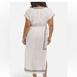 Rachel Zoe Swim Cover White Navy Embroidered Kaftan Size Small