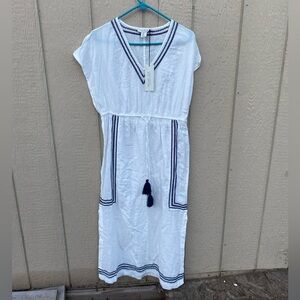 Rachel Zoe Swim Cover White Navy Embroidered Kaftan Size Small NWT